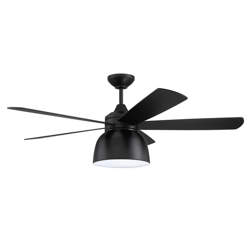 A sleek, jet-setting look never goes out of style. Available in the perfect size for your living room or bedroom, our LED Century Indoor/Outdoor Ceiling Fan will light your space as well as cool it down. With a special feature in the taupe version, the blades are reversible – switching from a wooden appearance to the color that matches its body. Energy saving DC Motor.Actual Size: 18.9″Hx52″Wx52″DAssembly Required: YesBackplate/Canopy Size: 2.37″Hx5.85″W RoundBlade Pitch: 13Bulb Base: Integrated LEDBulb Wattage: 19CFM Airflow High: 3308CRI: 90Ceiling to Blade Height: 10.57Color: BlackColorTemp: 3000Dimmable: YesDownrods Included: (1) 6″Dual Mount: NoFan Control: Both Hand Held Remote & Wall ContolIndoor-Outdoor: YesLight Kit: YesLumens: 1095Material: MetalMotor: 125x30Number of Blades: 5Overall Height Min: 18.9RPM on High: 167Reversible Blades: NoReversible Rotation: NoSafety Rating: DampSloped Ceiling Compatible: YesTotal Wattage on High: 21Weight: 14.33