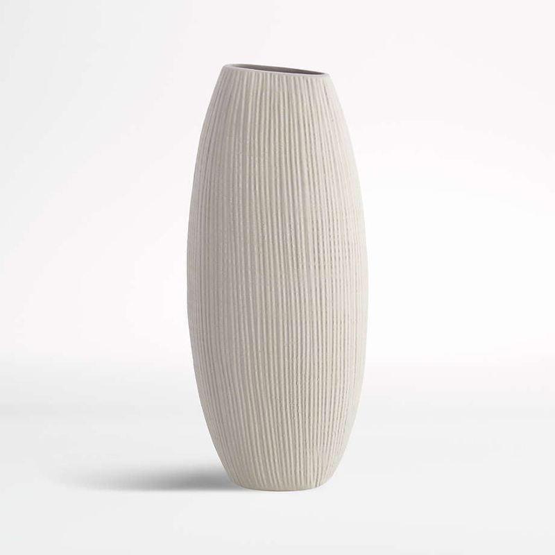 Textured lines enliven the surface of this graceful tall vase of cream-colored porcelain. Pair with the other off-white vases in our exclusive Alura collection for sculptural impact.