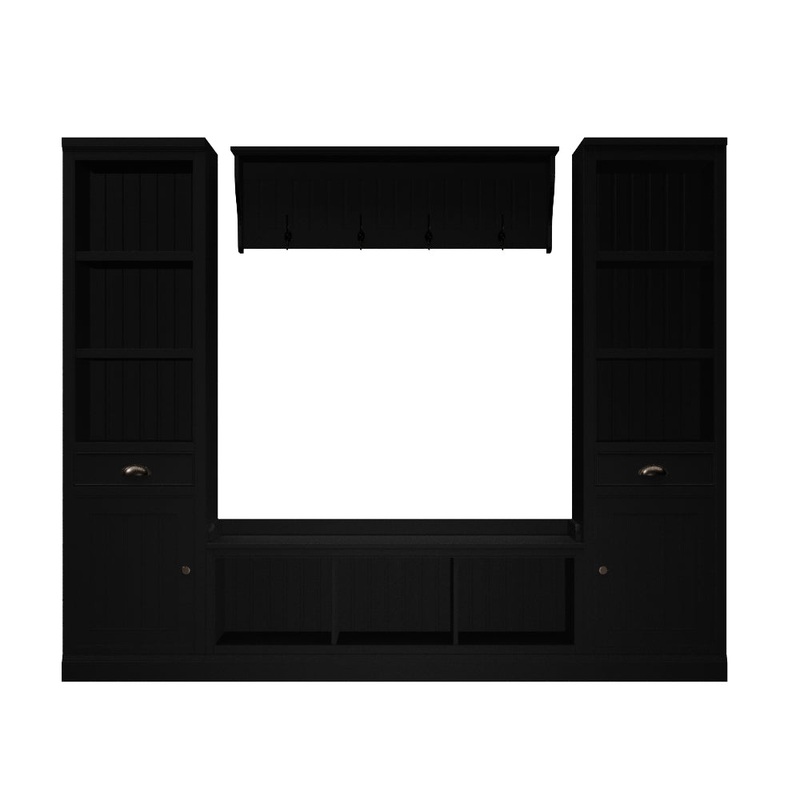 Designed like built-in cabinetry, our Aubrey Collection boasts handsome details like molding, plinth bases, and frame-and-panel fronts on doors and drawers. Beadboard paneling and a Dutch White water-based finish attest to its traditional American style. Its accented with hardware in an antique-bronze finish. This substantial modular collection is crafted with no return molding so that the components can fit flush next to each other.Entryway shelf features a spacious shelf and 4 iron hooks.Towers each feature 1 drawer and three adjustable shelves (one is behind door).Bench has 3 spacious cubbies for extra storage. Pair with our baskets (sold separately) and comfortable bench cushion (sold separately).Made of solid poplar wood and MDF with veneers.Finish is applied in multi-step process using water-based paint.Drawer features French dovetail joinery in front and English dovetail joinery in back of drawers. Waxed wooden glides that ensure smooth motion. Sturdy half-moon safety stop keeps drawer securely in place.Kiln-dried wood helps prevent warping, splitting, cracking and developing mildew.MDF is an engineered wood that lends exceptional strength and ensures the dressers structural integrity over time.The use of veneers results in high-quality furniture that has flawless surfaces and consistent color tones that will not be subject to cracking.Adjustable levelers help with stability on uneven surfaces.Anti-tip kit included: comes with safety-tested mounting hardware, instructions and a nylon strap. To prevent injuries from furniture tip-over, this item should be permanently fixed to the wall.Set includes one entryway bench, one shelf with hooks and two towers.Imported.