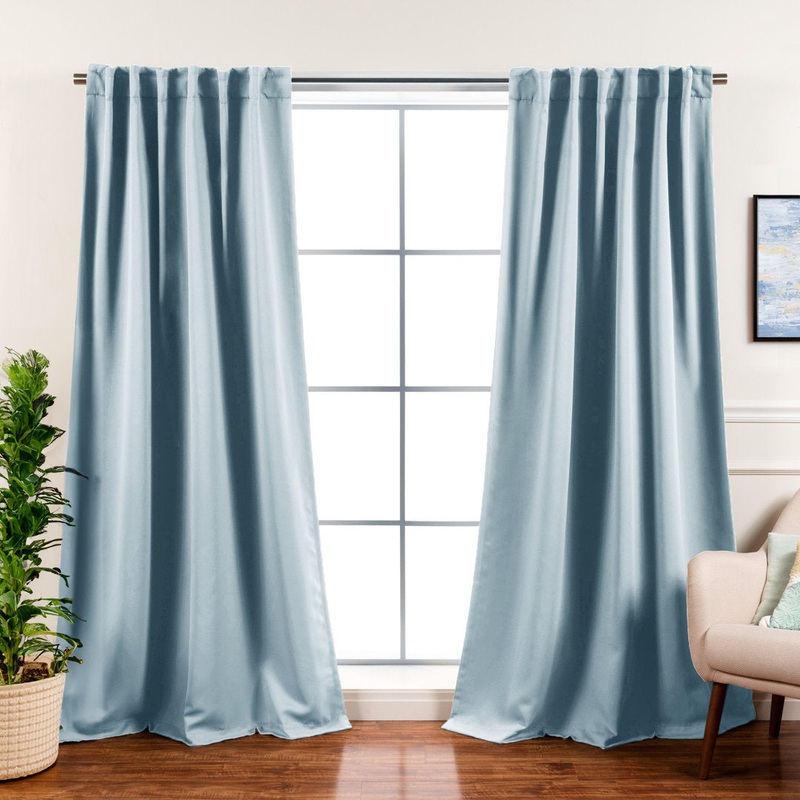 Bantam Solid Blackout Thermal Rod Pocket Curtain Panels (Set of 2) Ebern Designs Curtain Color: Sky Blue Size per Panel: 52″ W x 96″ L