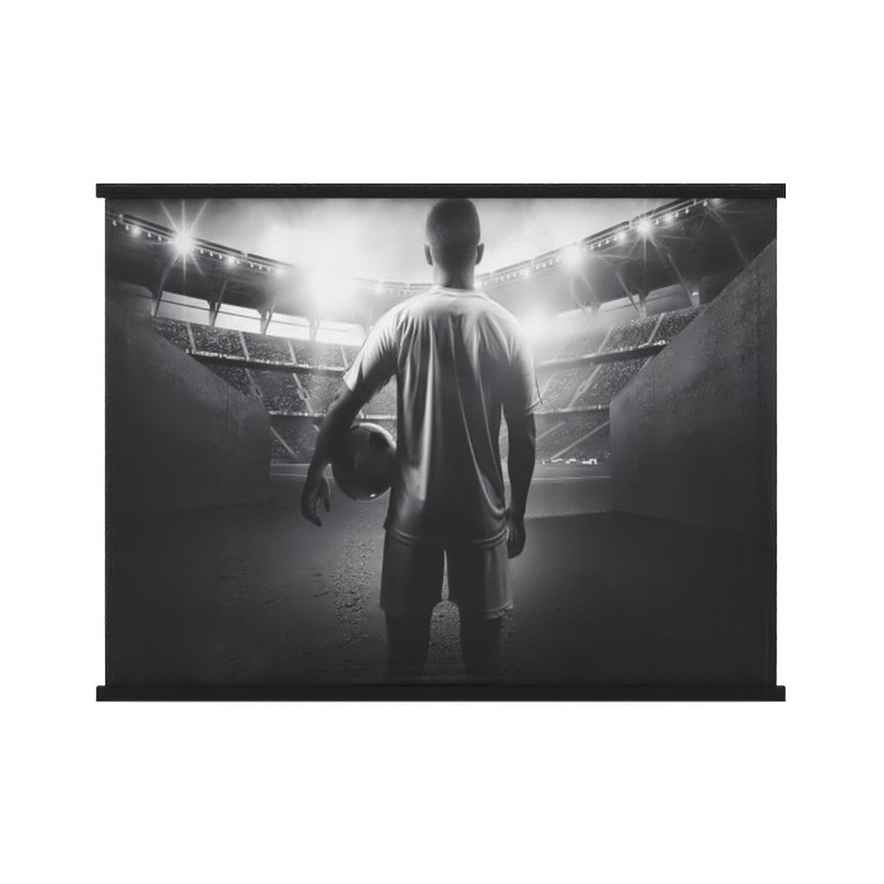 Get in the game with our Black and White Soccer Wall Mural. Capture the energy of your favorite game when you hang this piece in your bedroom.Art canvas is digitally printed from a cotton and polyester blend.Wooden bars keep murals flat and wrinkle-free.In