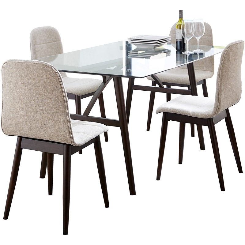 Add a touch of sophisticated modern flair to your dining room with this Briarwood 5-piece set. Complete with a table and four off-white upholstered chairs, this set fits easily in small spaces, making it ideal for eat-in kitchens or apartments. The rectang