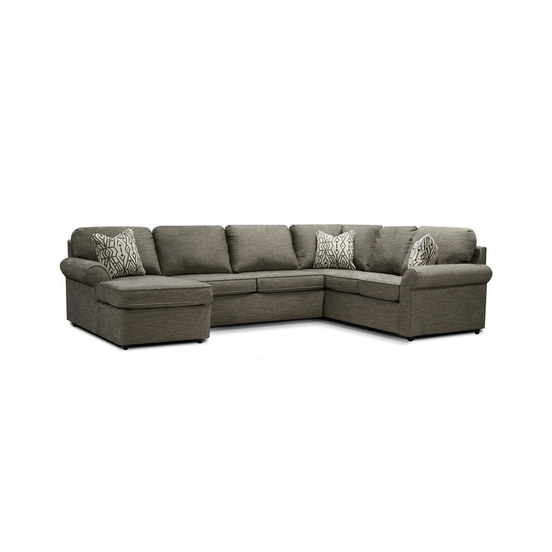 The Burke 3 Piece Left Chaise Sectional can be anything you want it to be. The versatility of style is endless with its rolled arm, self-welted cushions, and simple, clean lines. Choose from over 100 fabric options to make it truly yours. Its clean lines a