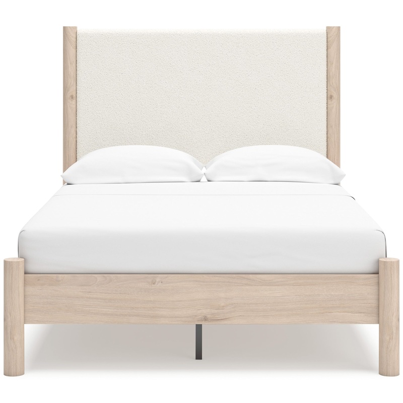 Add soft elegance to your bedroom with the Cadmori Upholstered Panel Bed. Available in Queen, King, and Full sizes, it features a neutral-toned fabric headboard and footboard framed by wood-look posts. Simple, modern, and perfect for a calm retreat.
