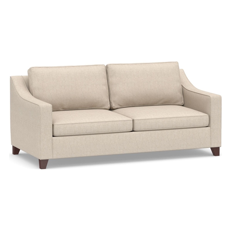CONSTRUCTIONSlope arm.Removable square tapered engineered wood legs feature a Bourbon finish.Loose cushions.Polyester-wrapped cushions for a firmer feel.Kiln-dried engineered hardwood frame with mortise-and-tenon joinery provides exceptional structural integrity.No-sag steel sinuous springs provide cushion support.Adjustable levelers provide stability on uneven surfaces.QUALITYCrafted in America by our own master craftsman. American and imported materials.CARERotate cushions and vacuum beneath them regularly.To prevent fading, keep fabric out of direct sunlight.Blot spills immediately with a clean, colorfast towel or sponge.ASSEMBLYWhite Glove Service: Items are delivered to your room of choice by appointment, then unpacked and fully assembled by a skilled two-person team. Includes packaging removal and recycling. Fee varies by location and order total.To ensure this piece is the right fit, see our How To Measure Guide. If you need help, our Design Crew is happy to answer any questions virtually or in your home. Book an appointment.