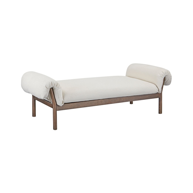 The Cardero daybed's solid ash frame, stained to a rich dark finish, showcases nature's artistry through intricate grain patterns. Timeless spindle detailing and flared arms complement the generously proportioned seat, and feather and fiber fill, inviting