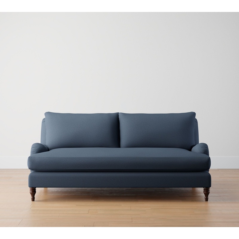 Our Carlisle Collection is stylish, easy to care for and built to last. Its designed with a deep seat and low back for unparalleled comfort. Intricately turned feet and subtle S curve in the base create a subtle parallel with the traditional English roll arms.English roll arm.Removable legs feature an Espresso finish.Loose cushions.Solid engineered hardwood frame.Corner-blocked frame with mortise-and-tenon joinery provides exceptional structural integrity.No-sag steel sinuous springs provide cushion support.Adjustable levelers provide stability on uneven floors.Crafted in America by our own master craftsman. American and imported materials.Choose single bench-seat cushion or multi-seat cushion.Choose polyester-wrapped cushions for a firmer feel.Choose down-blend-wrapped cushions for a softer feel.Rotate cushions and vacuum beneath them regularly.To prevent fading, keep fabric out of direct sunlight.Blot spills immediately with a clean colorfast towel or sponge.