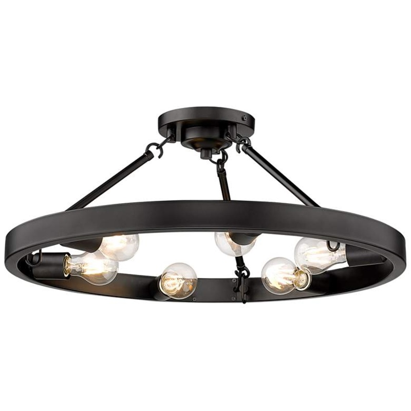 Clean industrial lines define the stylish brightness of the Castile collection of semi-flush ceiling lights, from Golden Lighting. The elegant matte black finish brings a minimalist aesthetics, ensuring that the brilliant rings of bulbs remain the main foc