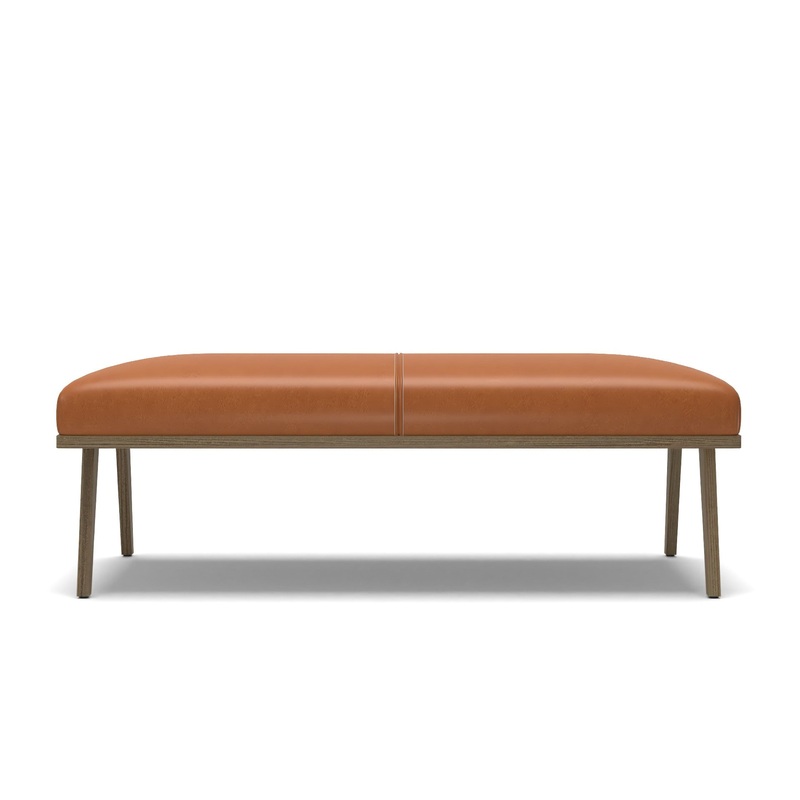 Relax back to another modern time. Cavett’s mid-century lines capture the best of 1950s design in solid ash and rich leather. Dramatic design attracts the eye from every angle. A sleek choice for living rooms, family rooms, entryways and bedrooms, Cavett’s supportive seat cushion is upholstered in lustrous full-grain, full-aniline-dyed leather. Each leather bench is distinguished by the unique characteristics of its beautiful leather hides, finished with oils and wax for an authentic look that will develop an even richer patina over time. Cavett leather bench is a Crate & Barrel exclusive.Cavett Ash Wood Leather Bench 46″Wx21″Dx16″HFrame is benchmade with solid ash with a natural ash finishTop-grain, full-aniline leatherSynthetic webbing suspension systemSoy-based polyfoam and fiber tight seat cushionEach piece exhibits the unique markings of natural leatherSee product label or call customer service for additional details on product content