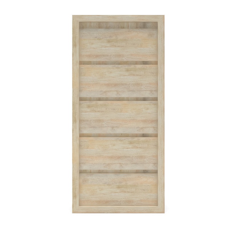 A salute to minimalist design, the clean-cut Cayman Collection proves that simple, high-quality furniture is in style. Crafted of solid wood with stunning dimensional finishes, the tall dressers low profile and recessed finger drawer pulls create a look thats timeless, even as your design aesthetic evolves over time.Features 5 spacious drawers for storage.Frame, top, legs, shelves and drawer fronts are expertly crafted of kiln-dried Mango wood.Drawer box sides are made of Acacia wood and plywood bottom.Back panel is made of Birch plywood.Kiln-dried wood helps prevent warping, splitting, cracking and developing mildew.Drawer features dovetail construction; metal ball bearing drawer glides; removable with plastic locks on sides (push upwards).Features a Biscotti finish.Anti-tip kit included: comes with safety-tested mounting hardware, instructions and a nylon strap. To prevent injuries from furniture tip-over, this item should be securely fixed to the wall. how to install anti-tip kits.Adjustable levelers provide stability on uneven surfaces.Imported.