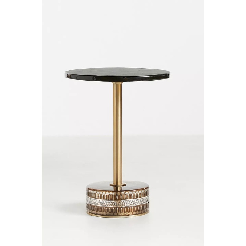 Featuring an amber glass top and ornately detailed base, the Cecile Table lends unexpected charm to your favorite space.Amber glass table with a brass baseWipe clean with damp clothThis piece is intended for indoor useNo assembly requiredImported