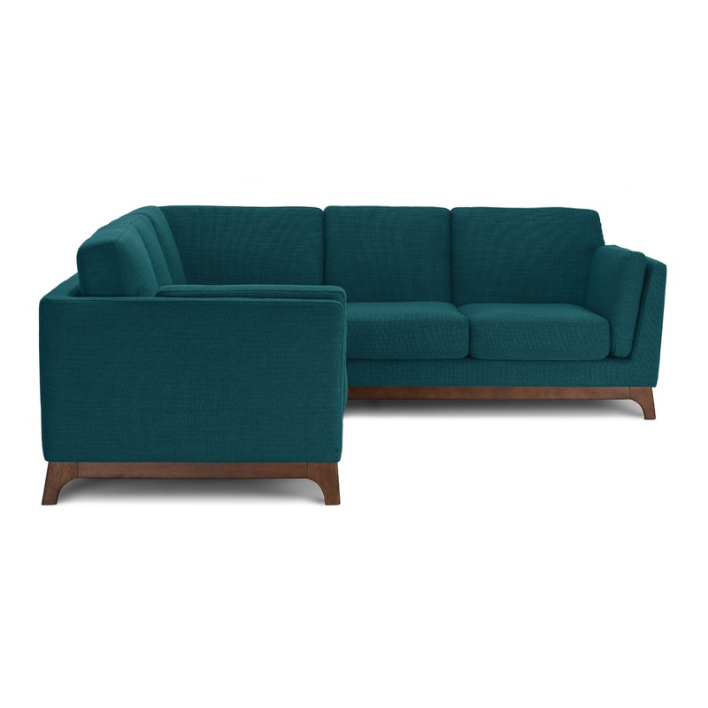 The Ceni sectional fuses the classic with the modern with its plush seating, sleek track arms and clean design lines. Its beautifully crafted wooden base with slanted legs enhances its strong and sturdy construction, while its detachable cushion seats, bac