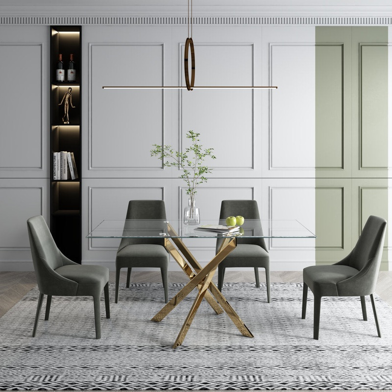 Ceolia 63″ Glass Dinning Table with Metal Base for 6 to 8 People Mercer41 Table Base Color: Gold