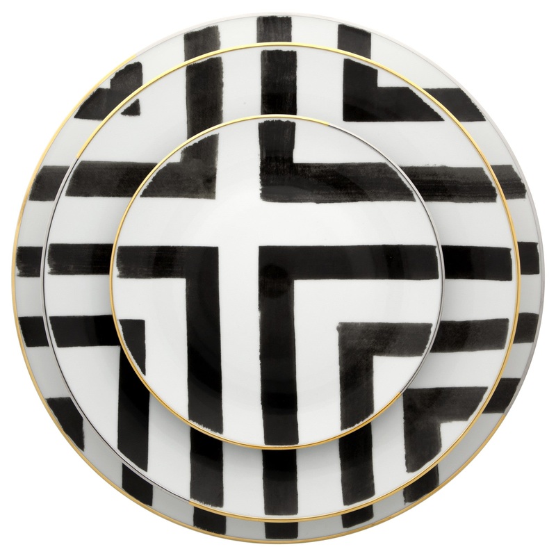 The graphic watercolor stripes and patterns enveloping this dinner plate take on a sophisticated edge when paired with hand-painted platinum and 24k-gold detailing. Famed French designer Christian Lacroix's signature mix-and-match style is on full display