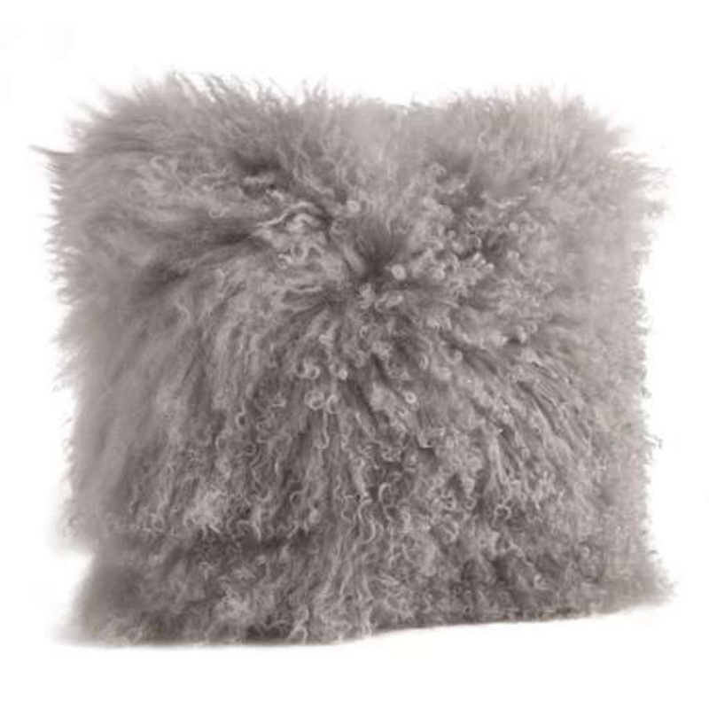 Mix a tasteful touch of texture into your room's cape with this on-trend throw pillow. Featuring a wool fur front in a solid hue, this square design brings a bit of fashion-forward flair to any space. Zipper closure on the microsuede back makes it easy to