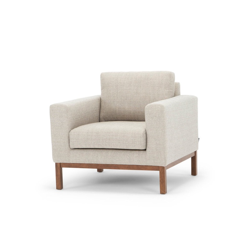 This armchair is your new go-to spot for relaxation and style. With its loose back and square arms, it offers a modern silhouette that fits right into any living room or reading nook. Crafted with a solid wood frame and brown wood legs, this chair is uphol