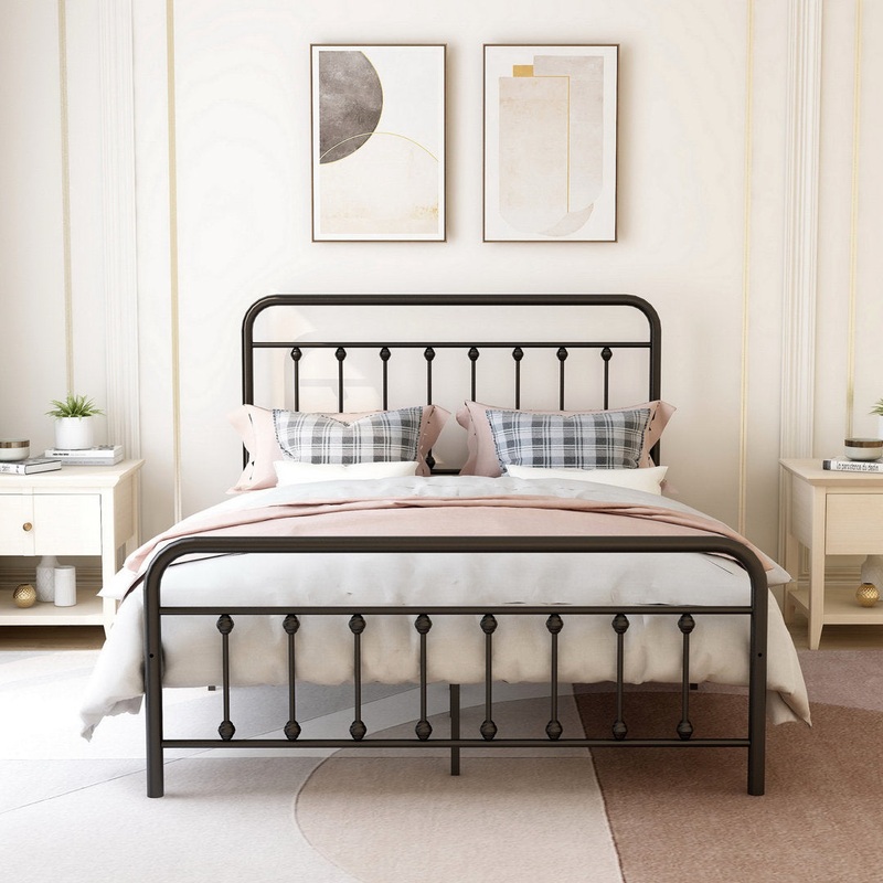 The hot spots of this metal bed are its simple design and classical lines. It is designed to fit your bedroom and provide a fun place to sleep. Strong bedstead and manufacturing experience can avoid noise, vibration, and scratches. It accords with an ergonomic design and provides you with comfortable sleep. The bed frame is made of steel with ultimate strength and safety design, where its 6 legs contact the floor for durability and stability. Simply with a mattress, you will enjoy a sweet sleep! There are 12 inches of storage space under the bed, which provides ample storage space. It is easy to move, and access and can place storage boxes, quilts, clothes, toys, and so on. Please follow the instructions to install step by step. If you have any questions about the product, please feel free to contact us, and we will provide you with free after-sales service. August Grove Size: Full/Double, Color: Black