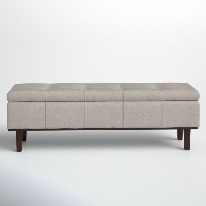 Elegantly appointed with tufted upholstery and a contrasting wood frame, this bench makes a chic addition to any space. Interior storage makes this piece a versatile yet stylish solution for a bedroom, entryway, or office. Joss & Main Color: French Beige B