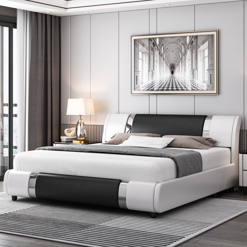 Conshohocken Low Profile Modern Leather Upholstered Platform Bed Frame with Adjustable Headboard Wade Logan Color: Black/White Size: Full/Double