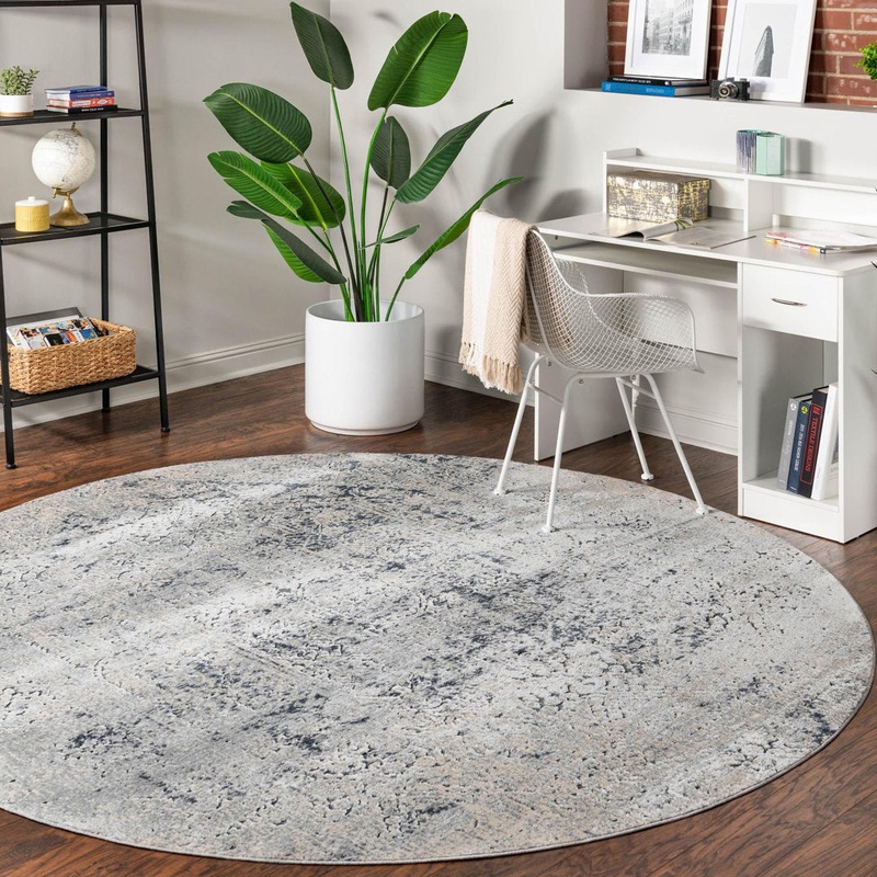 Corteney Oriental Gray Area Rug Alcott Hill Rug Size: Round 5′