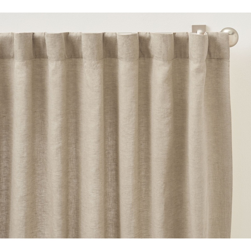 Made of 100% Belgian flax linen.Light-filtering liner: Crafted from 100% cotton, it lets daylight shine through.Our curtains 3-in-1 construction offers three hanging options: rod pocket, back tabs, ring top.The enzyme wash is used to soften and finish fabr