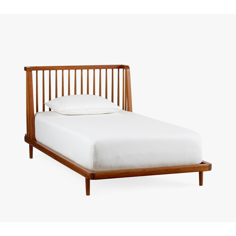 Inspired by Shaker-style furniture, the Dawson Collection is expertly crafted to bring a minimalistic aesthetic to their room. Designed with slatted detailing, this bed is constructed from sturdy solid wood thats finished by hand in a multi-step process so it lasts. Its lowered profile makes transitioning to a big-kid bed fun for little ones. Plus, its GREENGUARD Gold Certified, which means its built to contribute to cleaner air for a healthy home.HOW IT IS CONSTRUCTEDExpertly crafted of solid eucalyptus wood, poplar and rubber wood.Expertly constructed with mortise-and-tenon and tongue-and-groove joinery for high quality structural integrity.Kiln-dried wood helps prevent warping, splitting, cracking and developing mildew.Acorn color is hand finished in child-safe, water-based paint with clear top coat.GREENGUARD Gold Certified to contribute to healthier indoor air, keeping you and your family safer.Made in a Fair Trade Certified factory, supporting fair and safe labor practices and empowering workers to invest in their communities.DETAILS THAT MATTERMattress platform is made of 100% solid wood slats for extra strength; designed for use with or without a box spring (mattress and box spring are sold separately).Bed is not compatible with a trundle.KEY PRODUCT POINTSRecommended maximum weight Twin bed: 300 lbs.Recommended maximum weight Full bed: 500 lbs.All Pottery barn kids juvenile products are tested at 3rd party CPSC accredited labs to meet or exceed all industry voluntarily and regulatory safety requirements.Assembly required if Standard UPS delivery is selected.Imported.