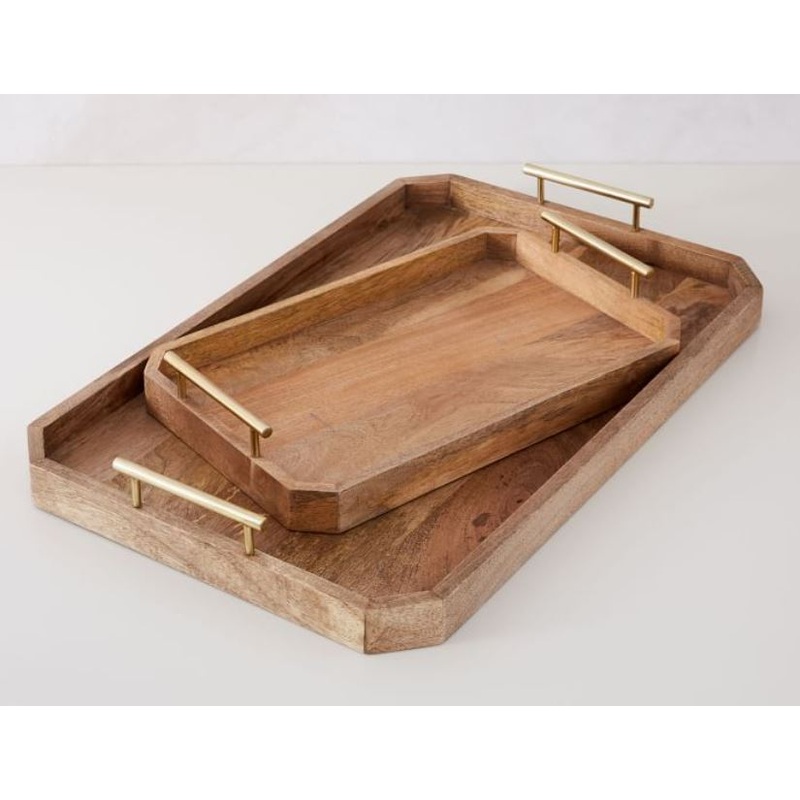 Made from solid mango wood, our brass-finished handled tray blends industrial- and deco-inspired style. Use this multi-tasker to organize your workstation or serve up breakfast in bed.