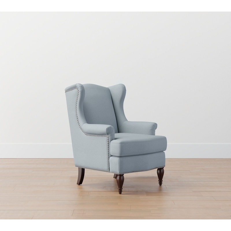 Roll arm.Removable legs with a Dark Brown finishPolyester-wrapped cushion for a firmer feel.Loose cushions.Features attractive nailheads finished in Antique Brass.Corner-blocked frame with mortise-and-tenon joinery provides exceptional structural integrity.QUALITYImported.CAREVacuum cushions regularly.To prevent fading, keep fabric out of direct sunlight.Blot spills immediately with a clean, colorfast towel or sponge.ASSEMBLYWhite Glove Service: Items are delivered to your room of choice by appointment, then unpacked and fully assembled by a skilled two-person team. Includes packaging removal and recycling. Fee varies by location and order total.To ensure this piece is the right fit, see our How To Measure Guide. If you need help, our Design Crew is happy to answer any questions virtually or in your home. Book an appointment.