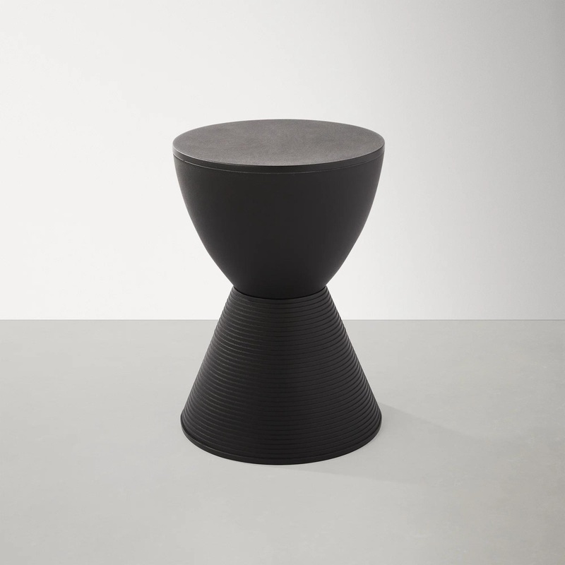 Defined by its hourglass silhouette, this end table brings a dash of modern style as it offers a spot to set down snacks, magazines, and more. Though its solid hue may seem understated at first, ribbed details along the base complete the look with a tastef