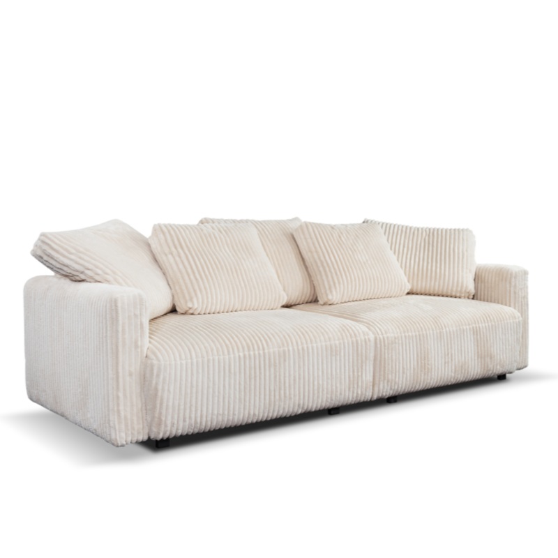 Izmri:- platums: 257 cm- dziums: 108 cm- augstums: 94 cm- guamzona: 222x155 cmpabas un izgatavoana:- rmis: priedes koks, skaidu pltne, kokiedru pltne, MDF pltne, apdares kartons- sdeklis: B veida viveida atsperes, sendvia pildjums (T28/30 putas + HR 30/10