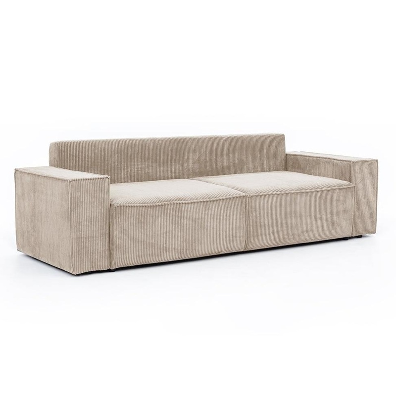 Izmri: platums: 245 cm, augstums: 90/77 cm, dziums: 95 cm.Guamvieta: 195 x 158 cmKju augstums: 3 cmSdeka augstums: 43 cm