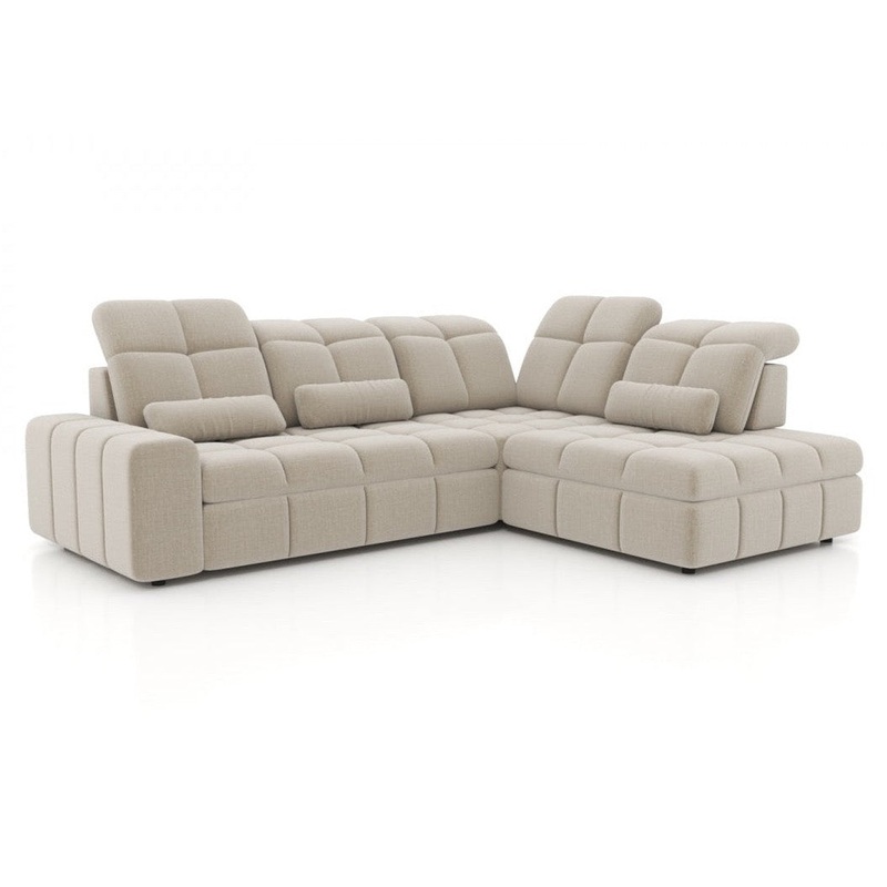 Lab puse Izmri: Platums: 275 cm, Augstums: 87/107 cm, Dziums: 211 cm, Guamvieta: 200 x 160 cm, Kju augstums: 3 cm