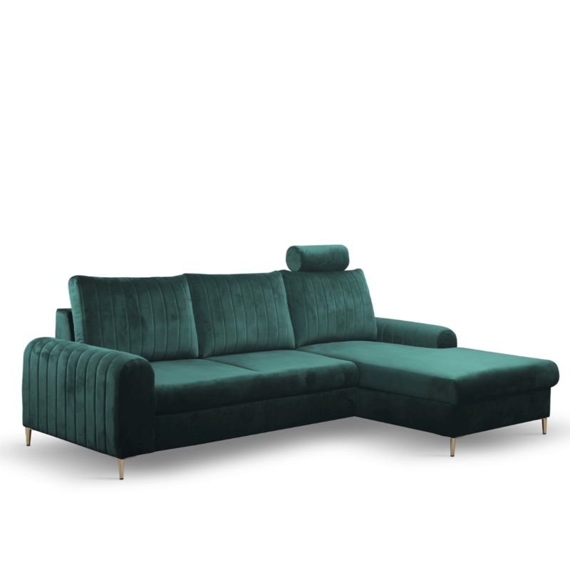 Monaske stra dvns ir mbele, kas lieliski iederas glamra stila interjer. Zelta krsas kjas un uves snos un muguras spilvenos pieir eleganci un piesaista uzmanbu.Izmri:- platums 252 cm / augstums 106,5 cm / dziums 90-168 cm- pulveris. guvieta 140 / 220 cmPapi