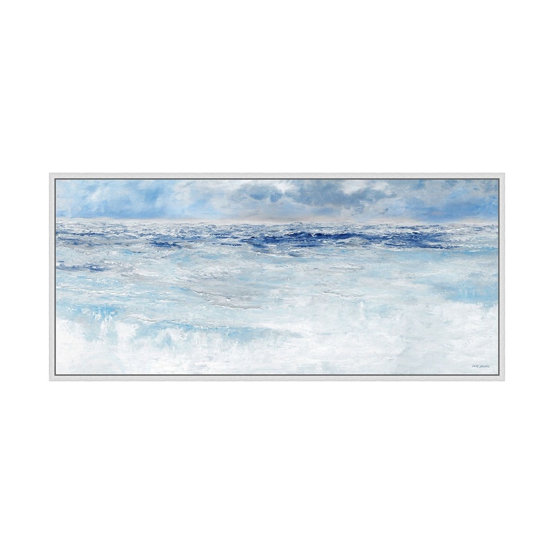 Framed Gicle reproduction on canvas.Print is featured in a silver Pulai floater frame.Backed with D-Rings for wall mounting.Wipe frame with a soft dry cloth.
