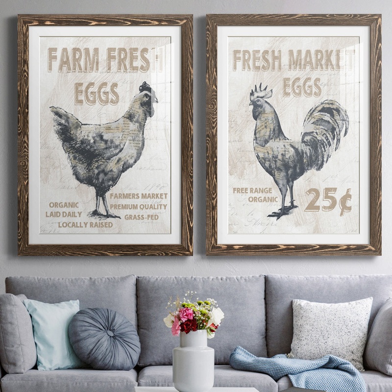 Farm Fresh Chicken – 2 Piece Print Set (Set of 2) August Grove Mat Color: White Size: 37.5″ H x 55″ W x 1.5″ D Format: Walnut Framed Paper