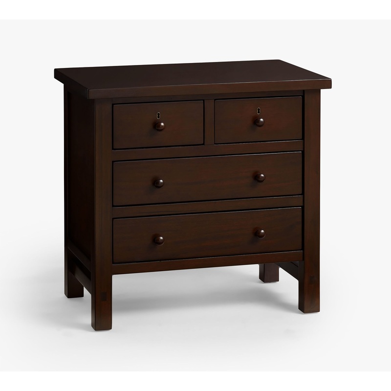 CONSTRUCTIONExpertly crafted of kiln-dried solidmeranti wood, meranti veneers, engineered wood and MDF.MDF is an engineered wood that lends exceptional strength and ensures the product’s structural integrity over time.The use of veneers results in high-quality furniture that has flawless surfaces and consistent color tones that will not be subject to cracking.All wood is kiln-dried, a process that ensures that the furniture will never split, warp, crack or mildew.Finished in Seadrift, Gray Wash, Espresso, Sienna Brown, Charcoal and Montauk White.Features 2 small top drawers and 2 spacious drawers below for storage.Adjustable levelers provide stability on uneven surfaces.Anti-tip kit included: comes with safety-tested mounting hardware, instructions and a nylon strap. To prevent injuries from furniture tip-over, this item should be securely fixed to the wall. how to install anti-tip kits.Imported.CAREDust with a soft, dry cloth.To protect the finish, do not apply abrasives or household cleaners.ASSEMBLYWhite Glove Service: Items are delivered to your room of choice by appointment, then unpacked and fully assembled by a skilled two-person team. Includes packaging removal and recycling. Fee varies by location and order total.