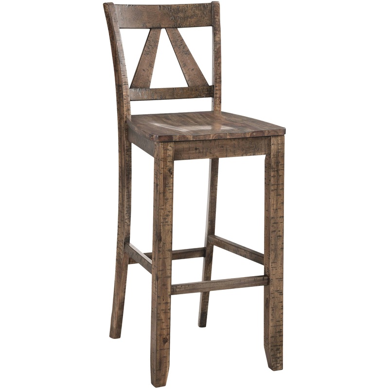 The Finn 30" Bar Stool Set is the perfect set for your home! The back of the chairs gets an update with a unique design that matches back to the Finn Dining Chairs. This duo features distressed markings throughout in a dark, walnut finish. This chair set s