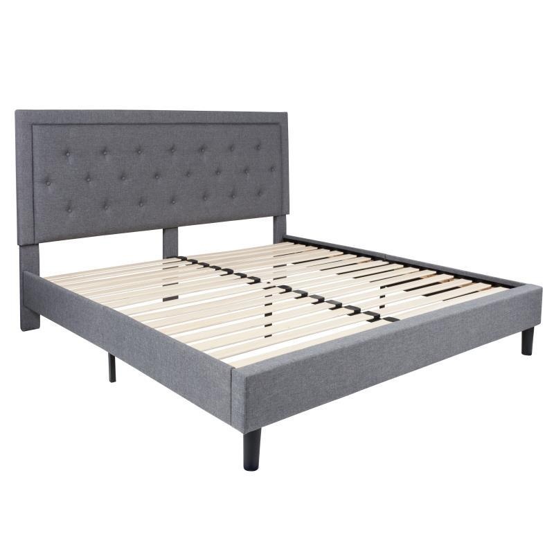 Roxbury King Size Tufted Upholstered Platform Bed in Light Gray Fabric. Flash Furniture – King Size Roxbury Platform Bed Frame – Light Gray 76.0″W x 80.0″D