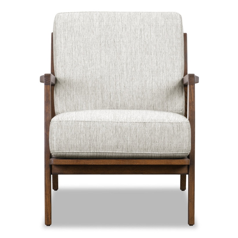 Lounge life. This pillow-back armchair lets you kick back in mid-century style during movie nights or casual coffee chats. Crafted with a kiln-dried ash wood frame with a rustic walnut finish, it showcases clean lines and an open design on wide, A-shaped l