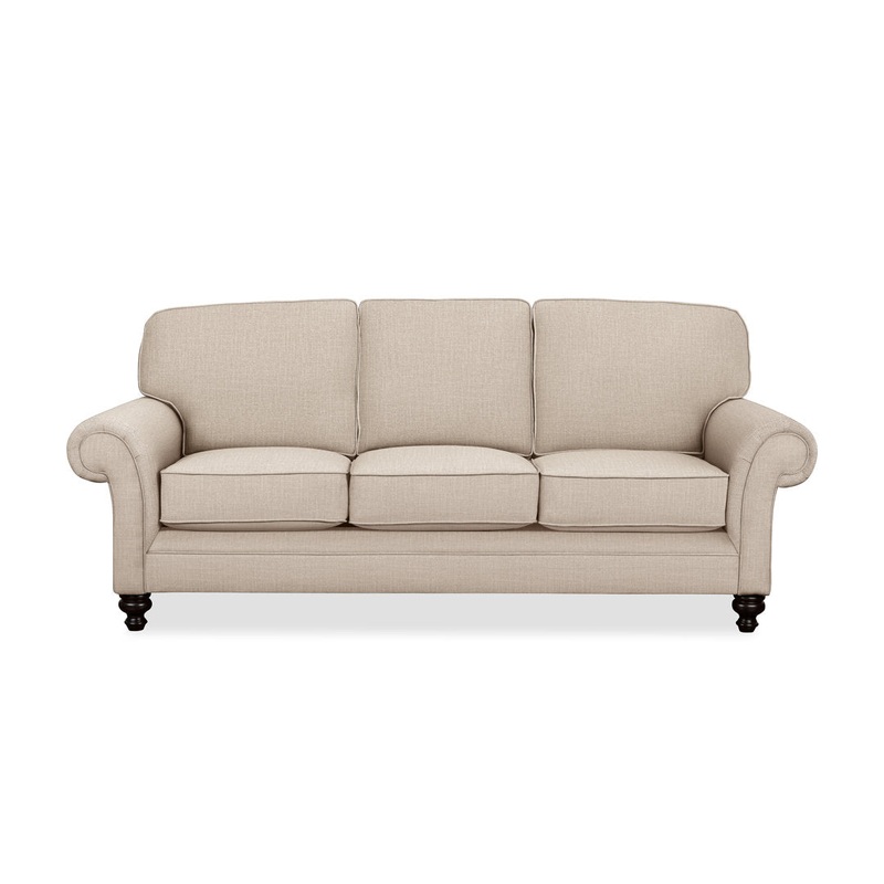 This traditional sofa is a classic choice for any decor, with curvy rolled arms and a modern unskirted base. Please note that this sofa does not include throw pillows. Wayfair Custom Upholstery Fabric: Conversation Ivory Basketweave