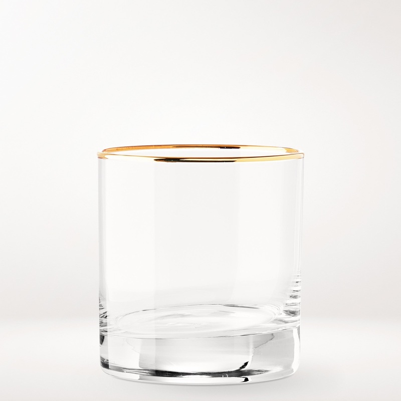 Embellished with hand-painted 24k-gold rims, our double old-fashioned glasses add a luxurious touch to entertaining. Ideal for cocktails, water, soda and iced tea, the glasses are suitable for both casual gatherings and formal events.