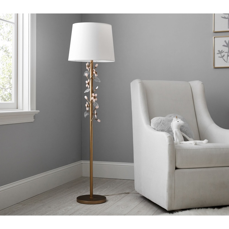 Inspired by the beauty of nature, this whimsical floor lamps glass flowers bloom on antique gold stems. Textural clear glass leaves accent the blooms and add hints of shimmer.DETAILS THAT MATTERCast from iron with glass flowers and leaves, and hand finishe