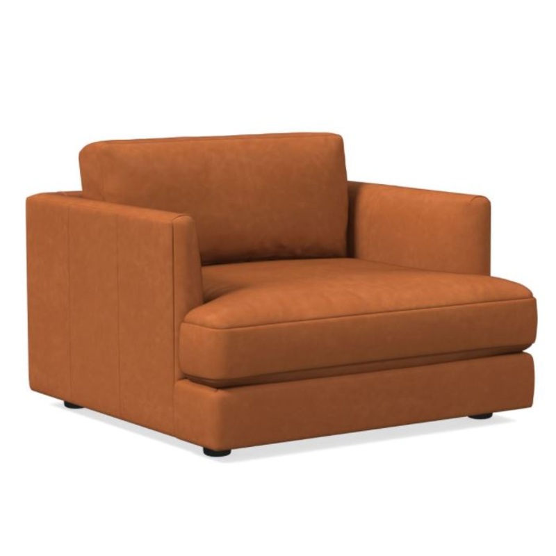 True to its name, the Haven Leather Chair and a Half is one you'll want to spend lots of time in. Its low frame, deep seat and overstuffed cushions give it a sink-right-in quality that's perfect for the whole family. It comes in your choice of durable leat
