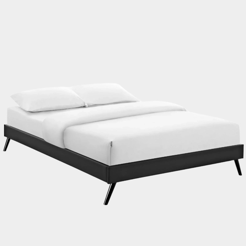 Accelerate your bedroom dcor with the Helen Platform Bed. Made with a solid wood frame upholstered in vinyl, Helen features tapered wood legs, plastic foot glides, ten sturdy wood slats with a central supporting bar, and two support legs for enhanced stabi