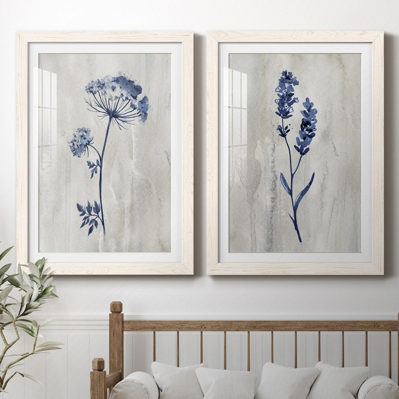 Indigo Botanical I – 2 Piece Graphic Art Print Set Laurel Foundry Modern Farmhouse Mat Color: White Size: 37.5″ H x 55″ W x 1.5″ D Format: White Framed Paper