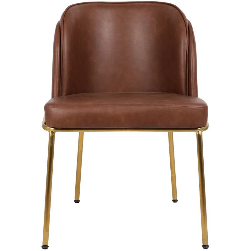 Give your dining room an upscale look with this Jagger faux leather dining chair. The seat and back of this lovely chair come upholstered in faux leather material that looks so genuine, only you will know it's not the real thing. Brushed gold iron legs on