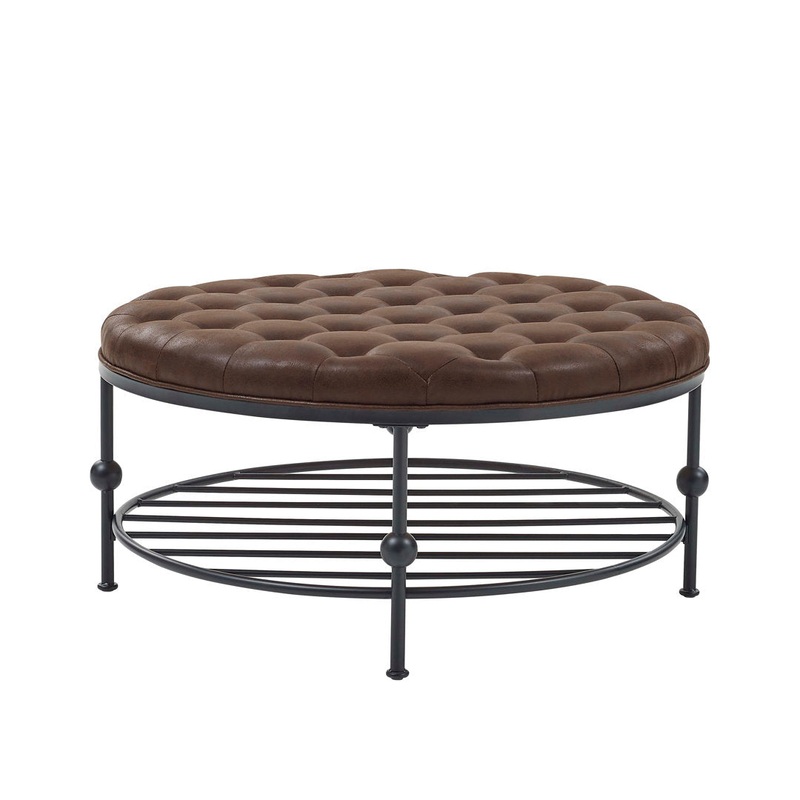 Jacki 36” Wide Faux Leather Tufted Round Cocktail Ottoman Williston Forge Body Fabric: Coffee Brown