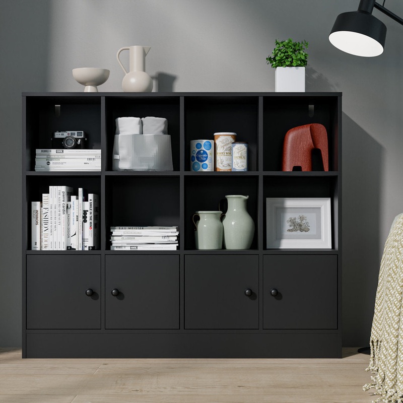 Kayliee 48″ W x 40″ H 8 Cube Storage Bookcase with 4 Doors Latitude Run Color: Black
