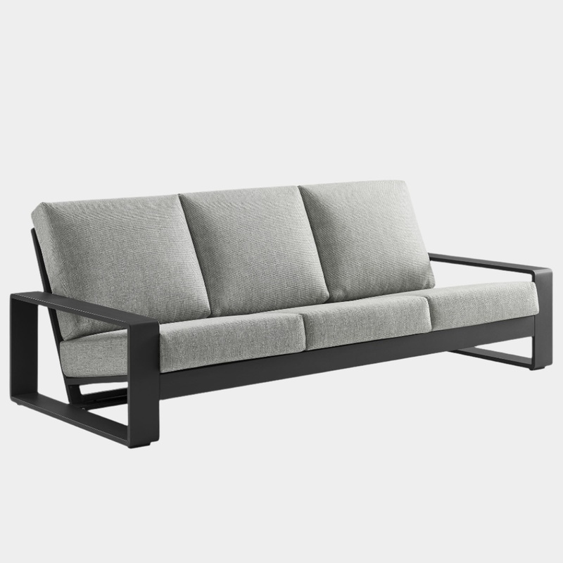 Unwind in sculptural sophistication with the Lirienne Outdoor Patio Sofa. Designed for modern relaxation, this statement-making 3-seater outdoor couch showcases a sleek, rectangular frame crafted from durable powder-coated aluminum, offering both resilience and style. The deep, angled seat and plush foam cushions invite you to sink into lasting comfort, while the smooth, weather-resistant upholstery is stain-resistant and easy to maintain with removable, washable covers. The Lirienne Aluminum Patio Sofa is as practical as it is stylish, making it the perfect outdoor retreat for backyard lounging. Whether placed on a sun-drenched deck or a shaded patio, this all-weather aluminum outdoor patio sofa brings an air of refined ease to any alfresco setting. Weight Capacity: 750 lbs.
