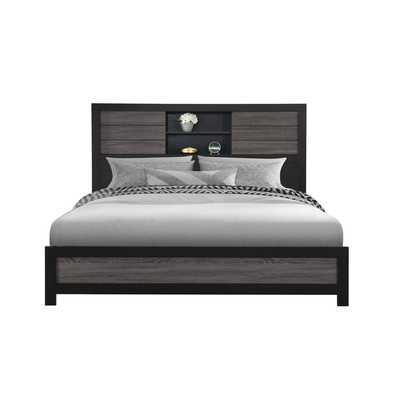 Lisbon – King Bookcase Bed Siderail And Slats – Gray Black